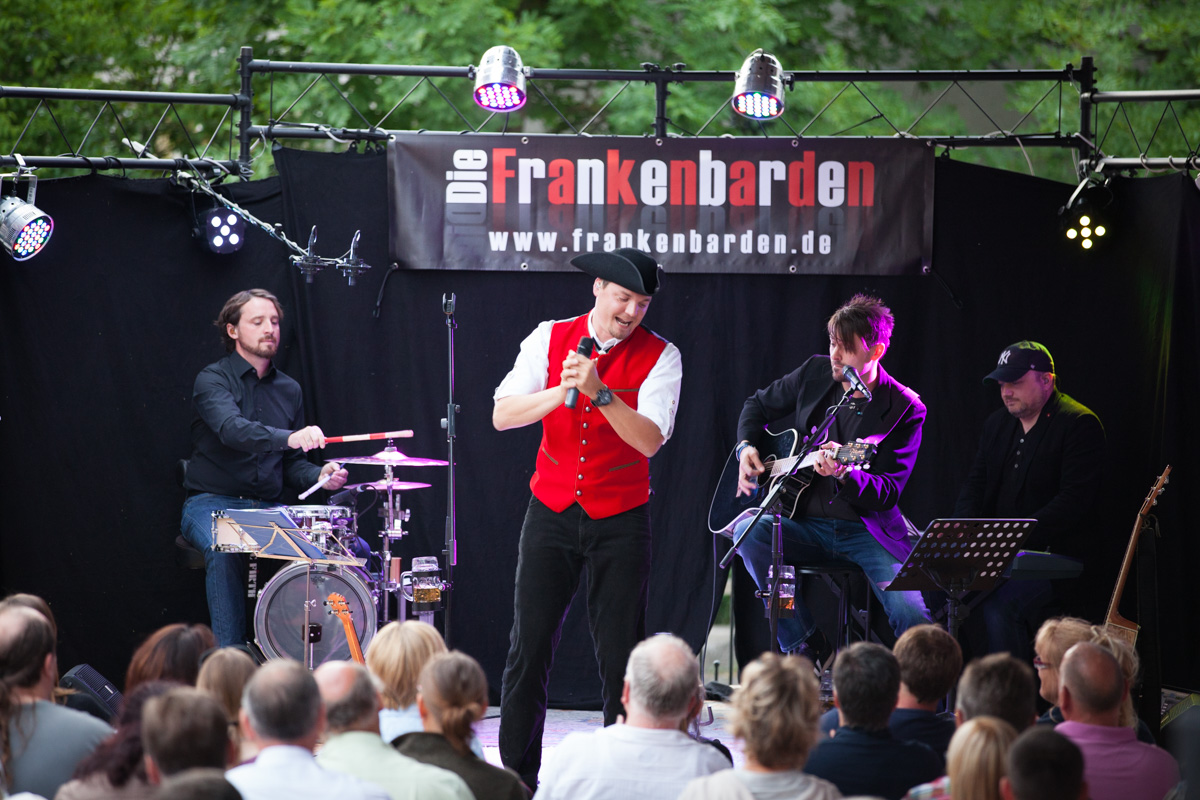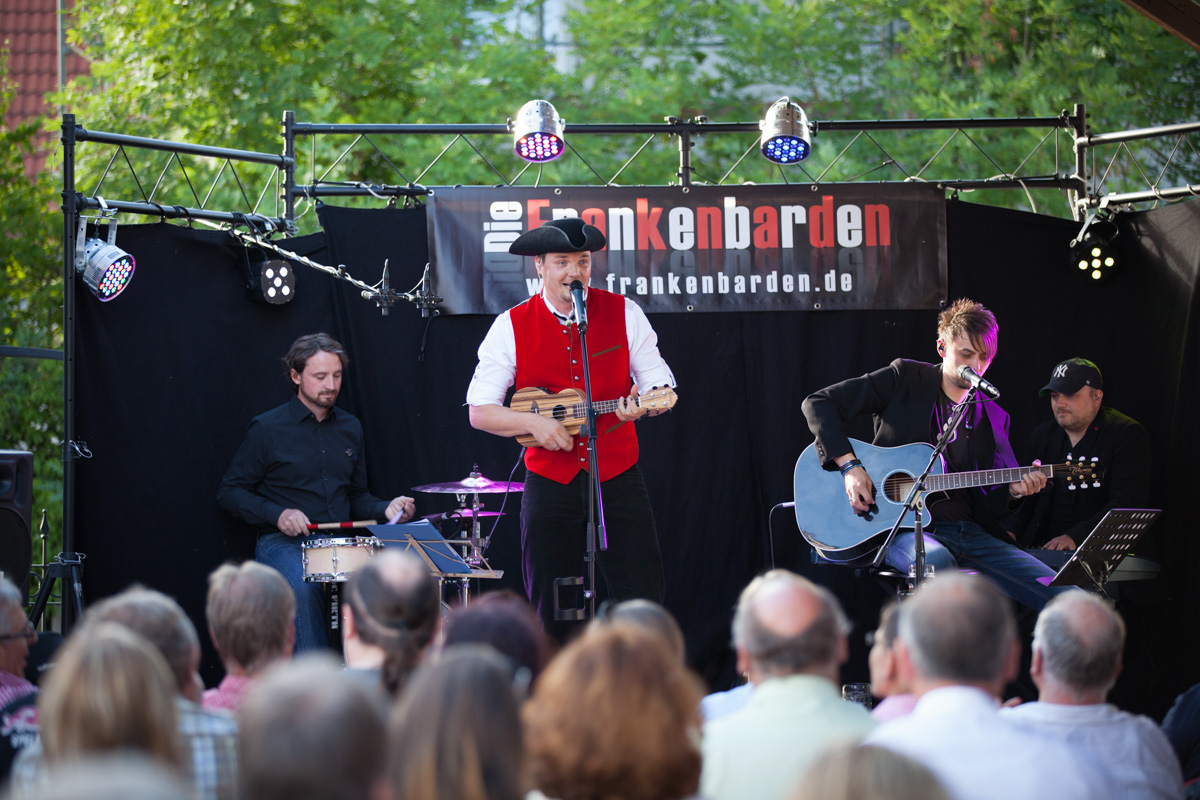Fränkische Mundart. Hofmann Bier. Brodwöschd. Jap, da können Die Frankenbarden nicht weit sein. Das Quartett um Sänger Martin O’Connor spielte am 28.06.2015 zur feierlichen Eröffnung des Audiofachwerk Tonstudios in Dottenheim. Schon ein paar Tage her, die Bilder wollte ich euch aber nicht vorenthalten.