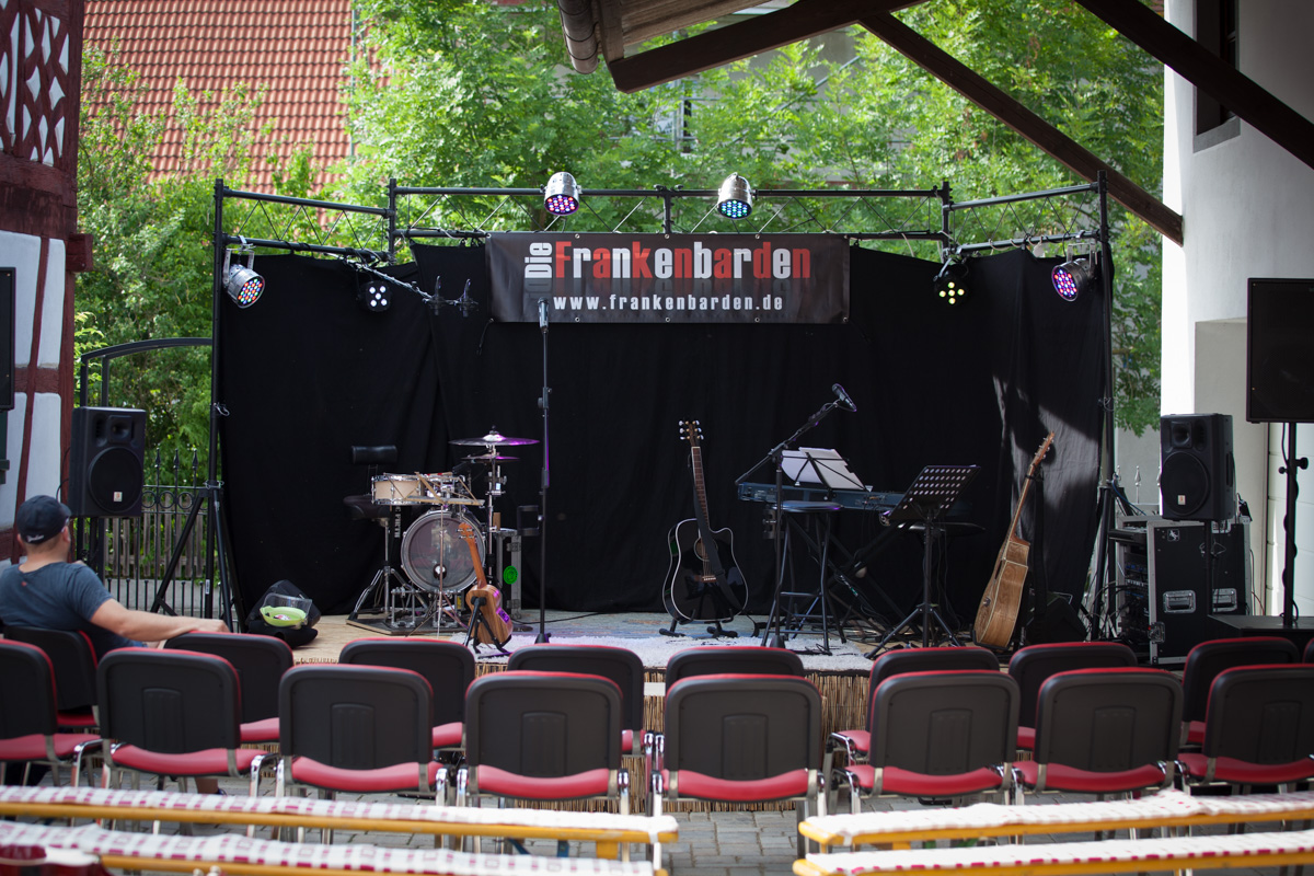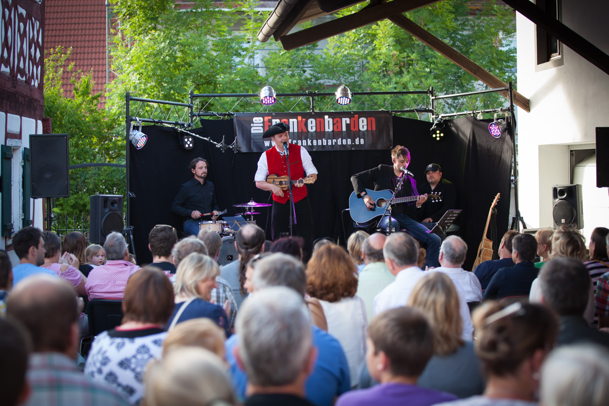 Aber zurück zum Thema. Der Abend in Dottenheim galt quasi als Geheimtipp. Trotzdem war der Hof um das Audiofachwerk bis zum letzten Platz besetzt. Die Frankenbarden touren seit einigen Jahren umher und bringen inzwischen immer eine kleine Schaar an Fans mit sich. Wer die Band also mal live sehen will, der sollte regelmäßig bei Facebook oder auf der Homepage vorbeischauen.